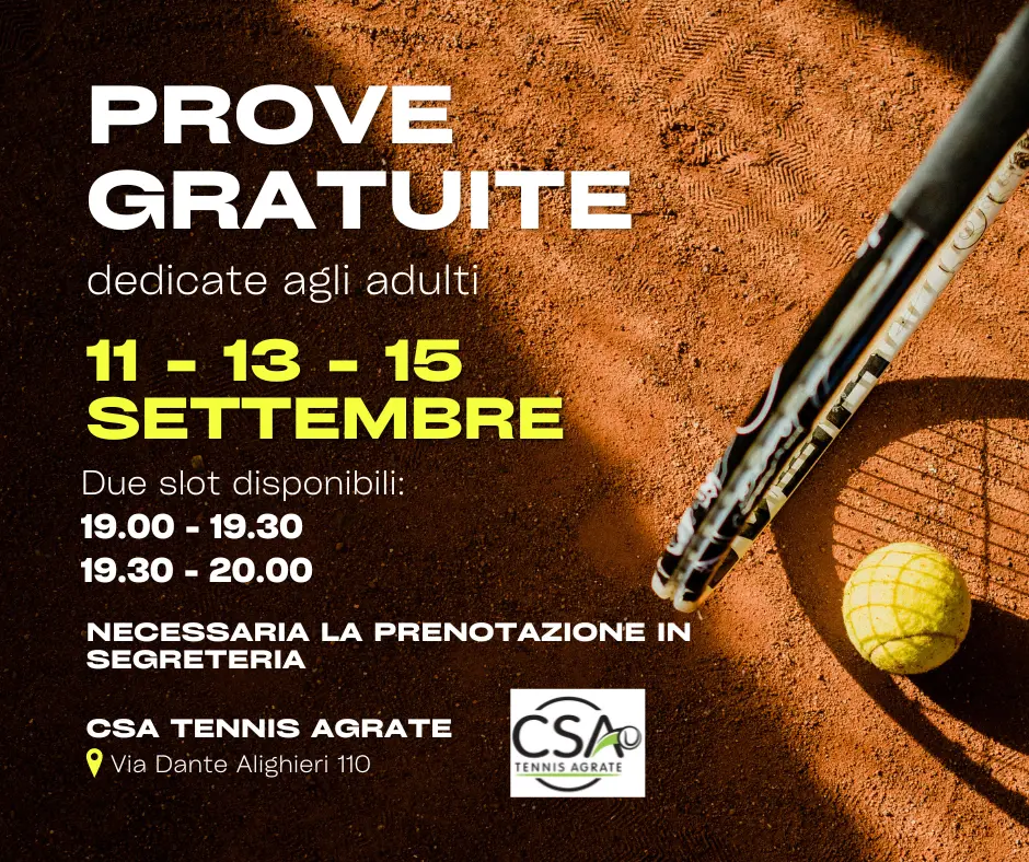 Tornano le prove gratuite dedicate agli adulti, nelle giornate del 11 - 13 - 15 settembre, sarà possibile prenotare uno slot di mezz'ora con un maestro dedicato.