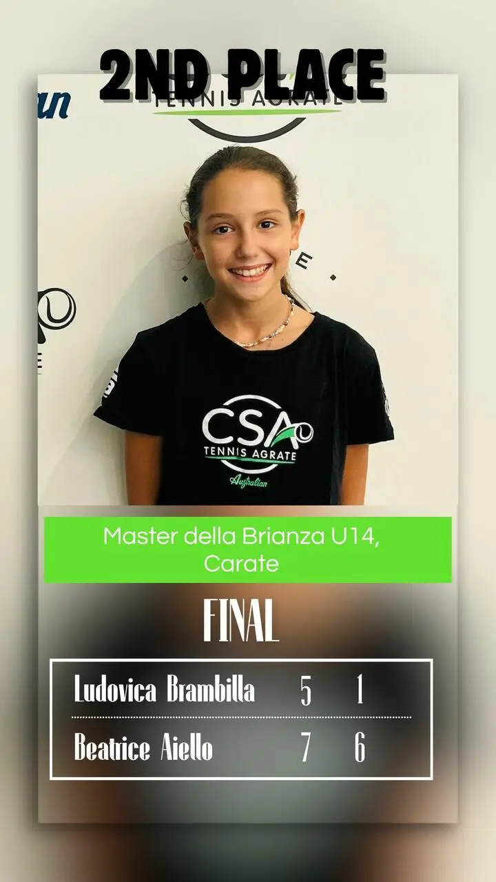 Grande risultato per la tennista Ludovica Brambilla che si è classificata seconda nella categoria Under 14, durante il master della Brianza, presso il centro sportivo di Carate Brianza. Complimenti Ludovica!